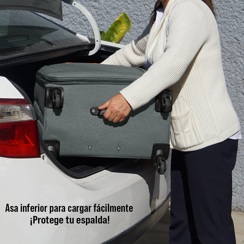 - Cómoda: Ruedas giratorias y mango ergonómico.